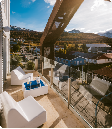 Disfrutá panorámicas de Ushuaia desde tu habitación o nuestra terraza.